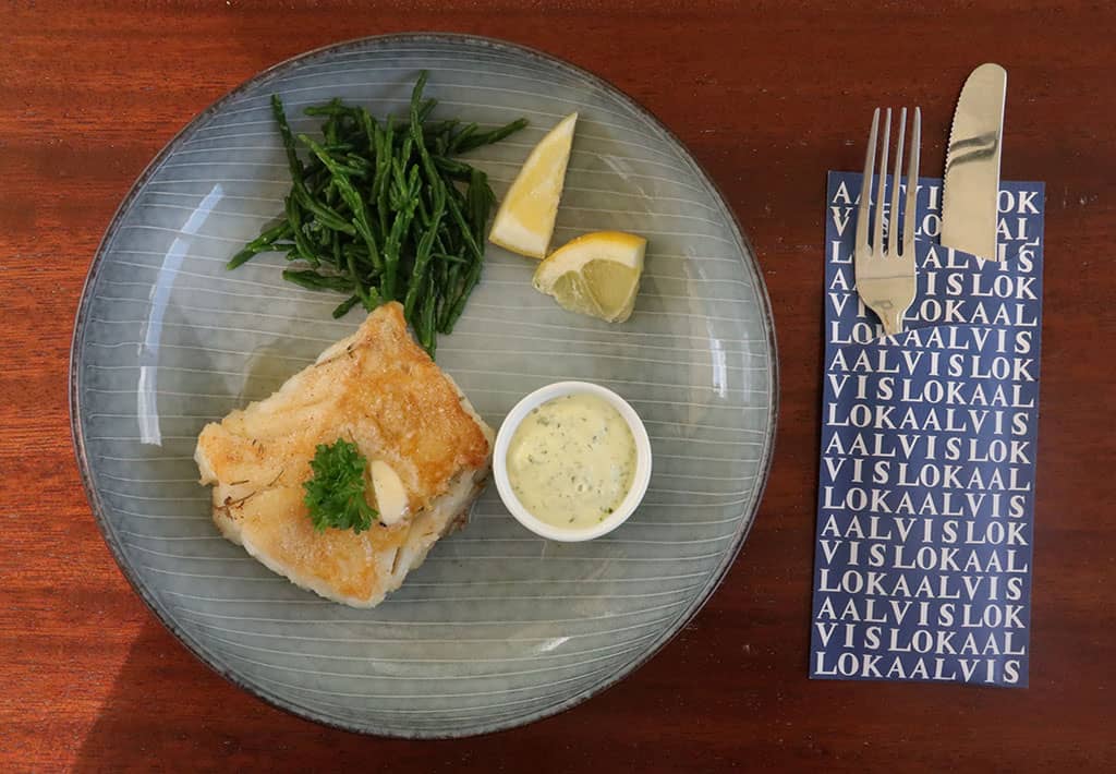 Serveer met een schijfje citroen en een klontje roomboter.