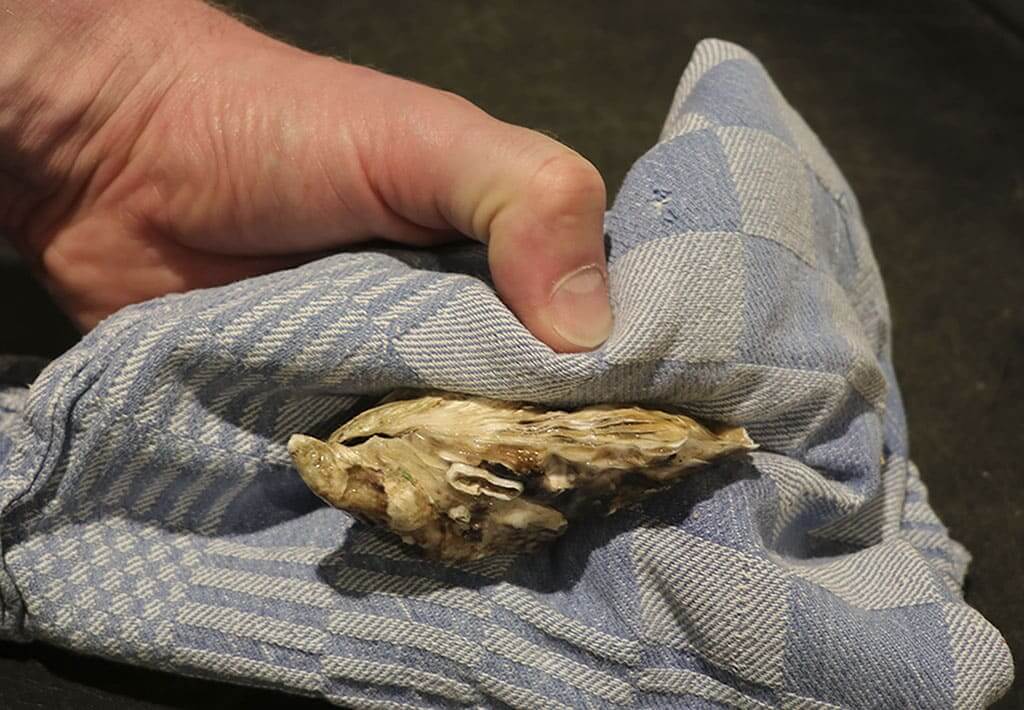 Oesters moeten altijd dicht zitten. Is je oester al open voordat je überhaupt begonnen bent aan het openmaken van je oester? Gooi deze dan meteen weg.