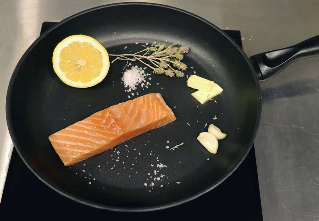 Doe een klontje room boter in de pan Besprenkel met wat citroensap. Laat de boter niet aanbranden maar smelten op wat lager vuur.