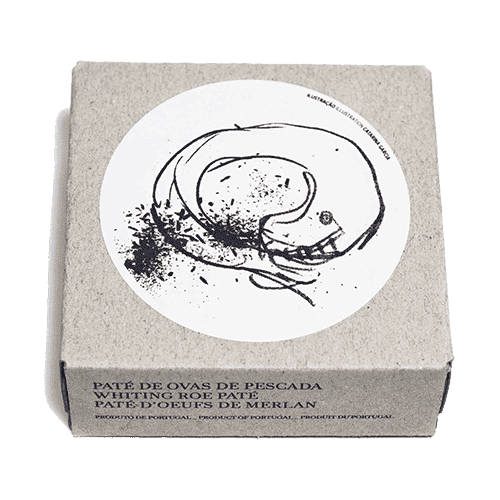 Door deze roe zwemmen vissen eitjes. Voor de fijnproevers. Witte roe pate in een zeer fraai vormgegeven blikje. Het prachtige ontwerp is ontworpen door verschillende kunstenaars. Onder toeziend oog van ontwerper Luis Mendonça.